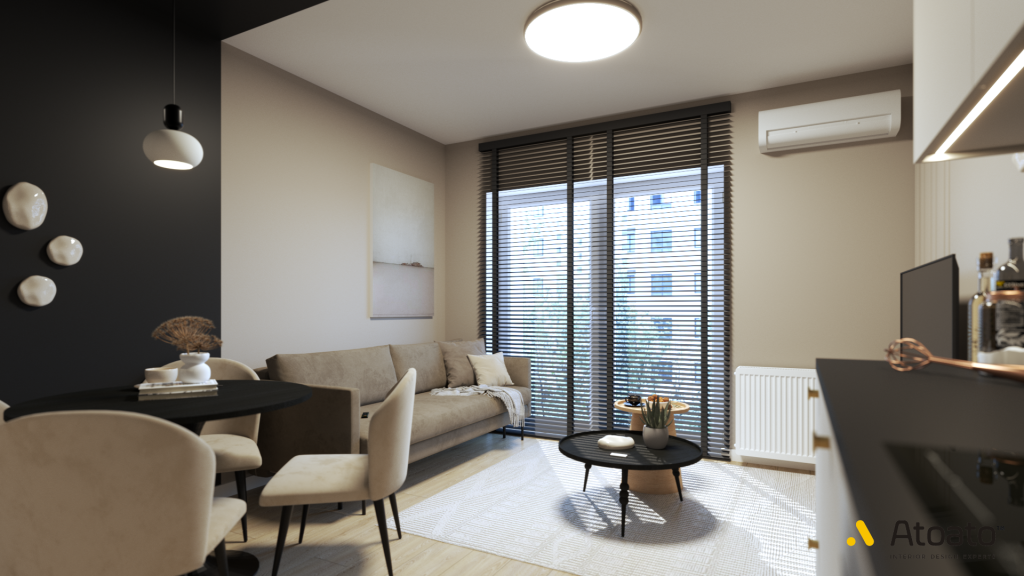 Mieszkanie na wynajem 48m² – Funkcjonalność w odcieniach beżu, brązu i czerni